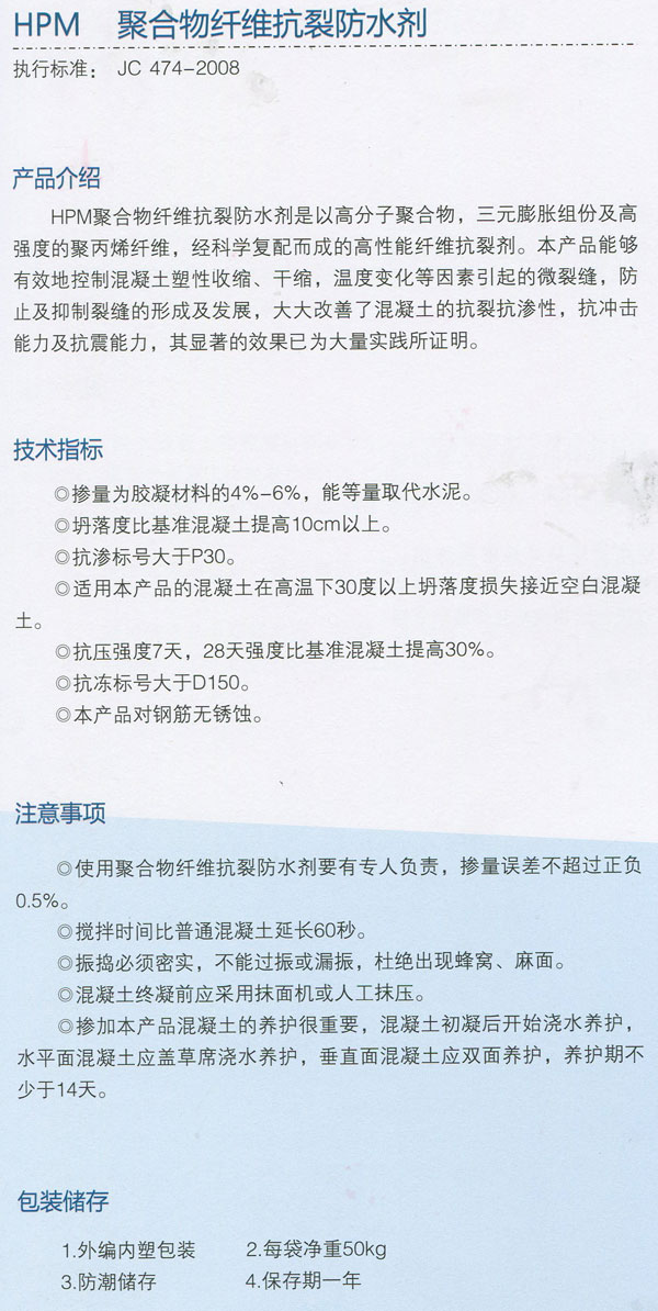 HPM聚合物纖維抗裂防水劑